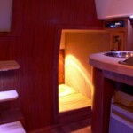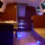 Nasz Weekend 820 LUX wyposażony jest bardzo komfortowo i w odróżnieniu od standardowego wyposażenia posiada automatyczne WC ze zbiornikiem na fekalia dzięki któremu można korzystać z toalety w każdym momencie, prysznic z ciepłą wodą oraz bardzo wydajną lodówkę 80 l w której również w środku sezonu możemy korzystać z zamrażalnika. Jacht ma w pełni zabudowany kokpit dzięki czemu w czasie deszczu sternik znajduje się w osłoniętym, suchym i ogrzewanym miejscu. W mesie Weekend 820 oferuje 7 pełnowymiarowych miejsc do spania, telewizor cyfrowy oraz radio MP3 bluetooth, wyposażoną kuchnię z instalacją ciepłej wody z 40 litrowym bojlerem, który zapewnia ciepłą wodę przez cały dzień. Jacht napędzany jest silnikiem zaburtowym o mocy 25 KM, który jest specjalnie zabudowany i dodatkowo wygłuszony aby zapewnić jak największy komfort podczas rejsu, na dziobie zamontowany jest silny ster strumieniowy pomocny w trakcie manewrów portowych. Na pokładzie słonecznym znajdują się materace pozwalające cieszyć się urokami Pętli Żuławskiej. Na dachu zaś panel słoneczny o mocy 460 W !!! dzięki któremu możemy tym jachtem pływać cały tydzień bez konieczności zawijania do portu i ładowania akumulatorów. System ogrzewania Webasto pozwala na ogrzanie mesy, a także kokpitu. Sternik oprócz szczelnego i ogrzewanego miejsca wyposażonego w nawigację, echosondę i wszelkie wskaźniki ma do dyspozycji nawet wycieraczkę na przedniej szybie żeby nie było kłopotu z widocznością w trakcie rejsu w deszczowy dzień. Na wyposażeniu jachtu znajdują się również mapy, przewodniki i informatory Pętli Żuławskiej.